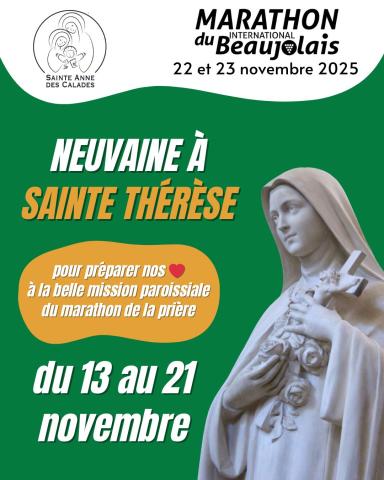 À l’occasion du Marathon de la prière, nous vous invitons à vivre une neuvaine à Sainte Thérèse de Lisieux, patronne des missions… et de notre marathon !